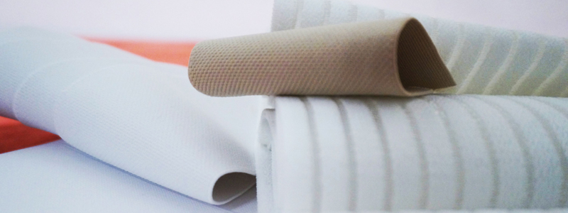 Gewirkte und gewebte Bandagenbänder gefertigt aus verschiedenen Material mit angepassten technischen Werten und Farben entwickeln wir gerne für Sie.