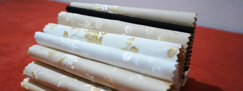 Wir bieten verschiedene Jaquardqualitäten von 250 g/m2 bis 320 g/m2, gefertigt aus Baumwolle/Viskose oder Baumwolle/Polyester.